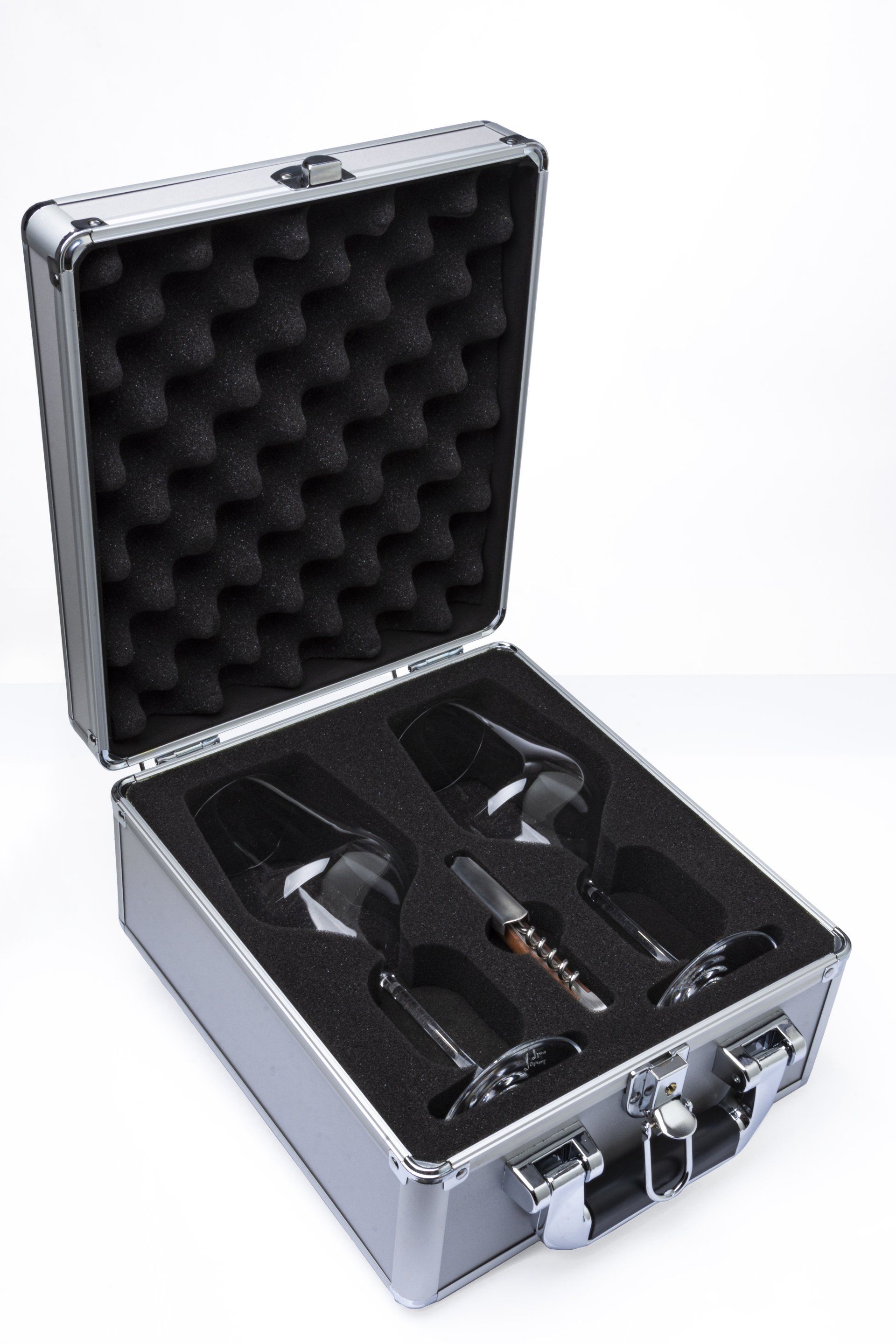 - a high-quality, shock-proof design hybrid aluminum case with a precisely fitting foam inlay for secure attachment of the premium glasses